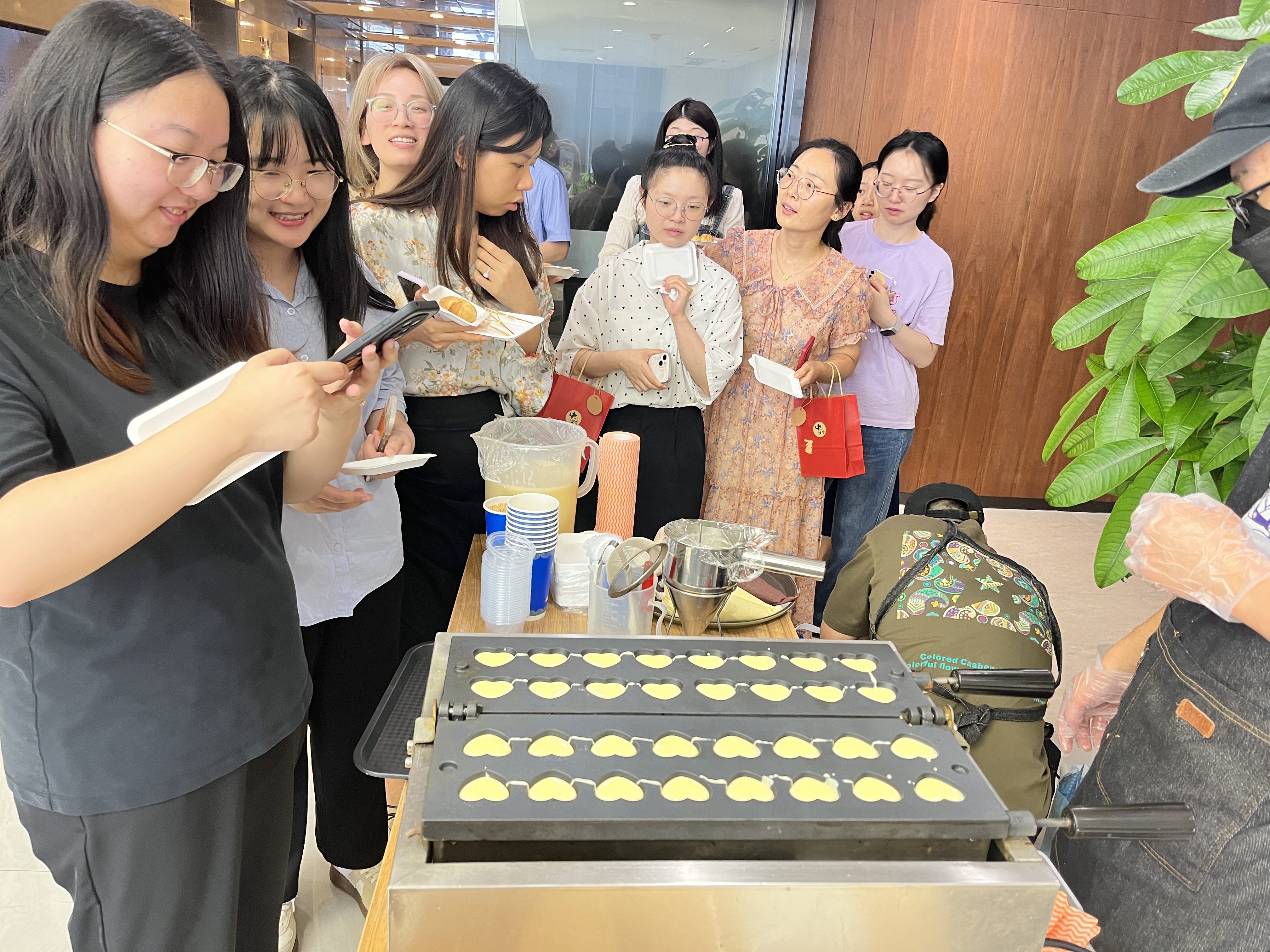 在本次活動中,我們在漢嘉國際25樓前臺和泛海國際A32樓前臺布置了充滿溫馨的中秋氛圍,還設置了中秋美食區(qū)。一系列造型可愛的中秋糕點和多種口味的迷你糖葫蘆讓人垂涎欲滴,尤其是現(xiàn)場制作的盲盒口味雞蛋仔,更是受到了大家的熱烈歡迎。