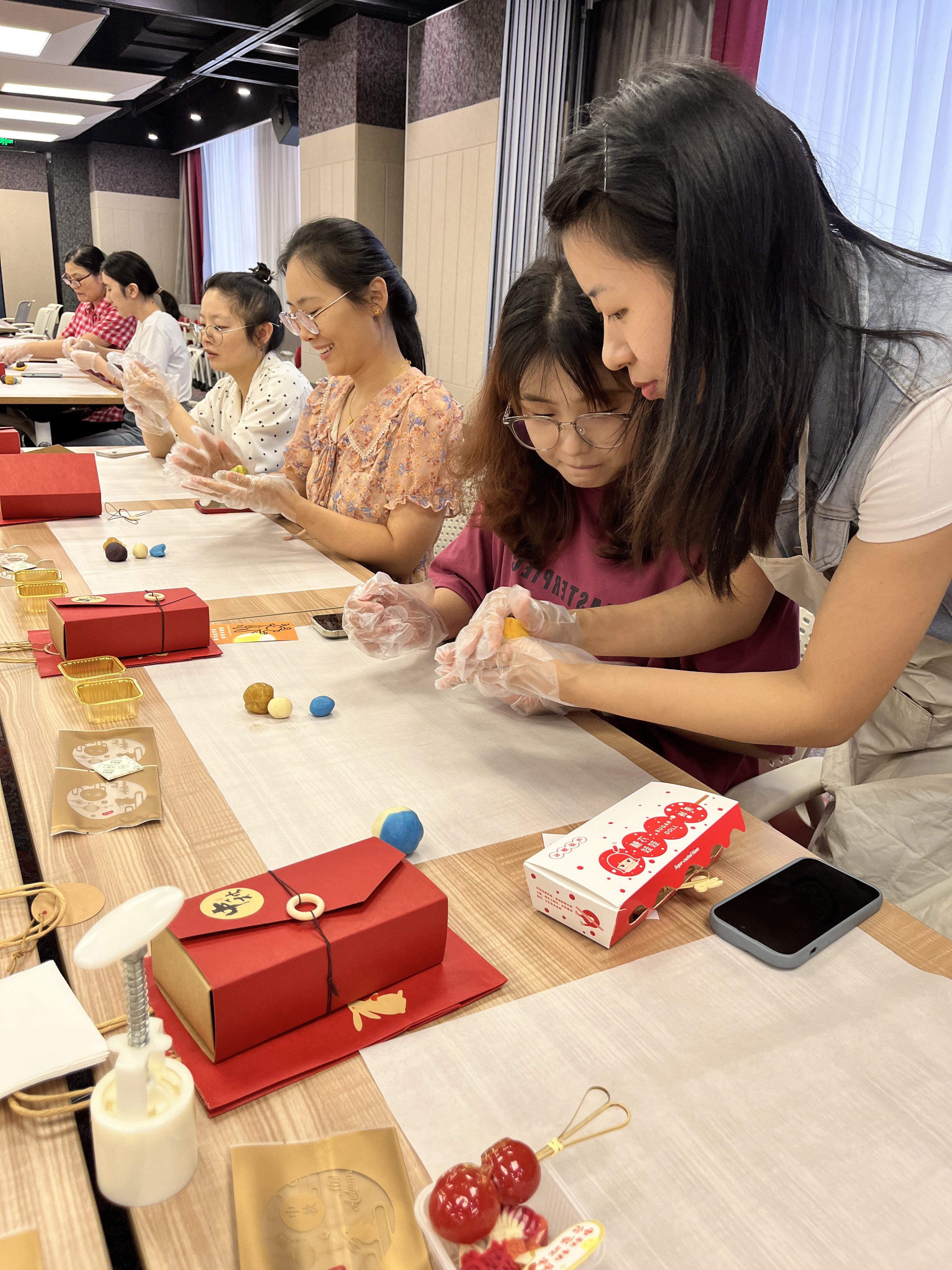同時,在漢嘉國際35樓培訓中心和泛海國際A9樓培訓室還特別設置了DIY中秋糕點活動,共有150多名員工參加了本次活動。在手作師傅的指導下,很多第一次嘗試制作糕點的員工,都順利做出了一個個精美飽滿的糕點。
