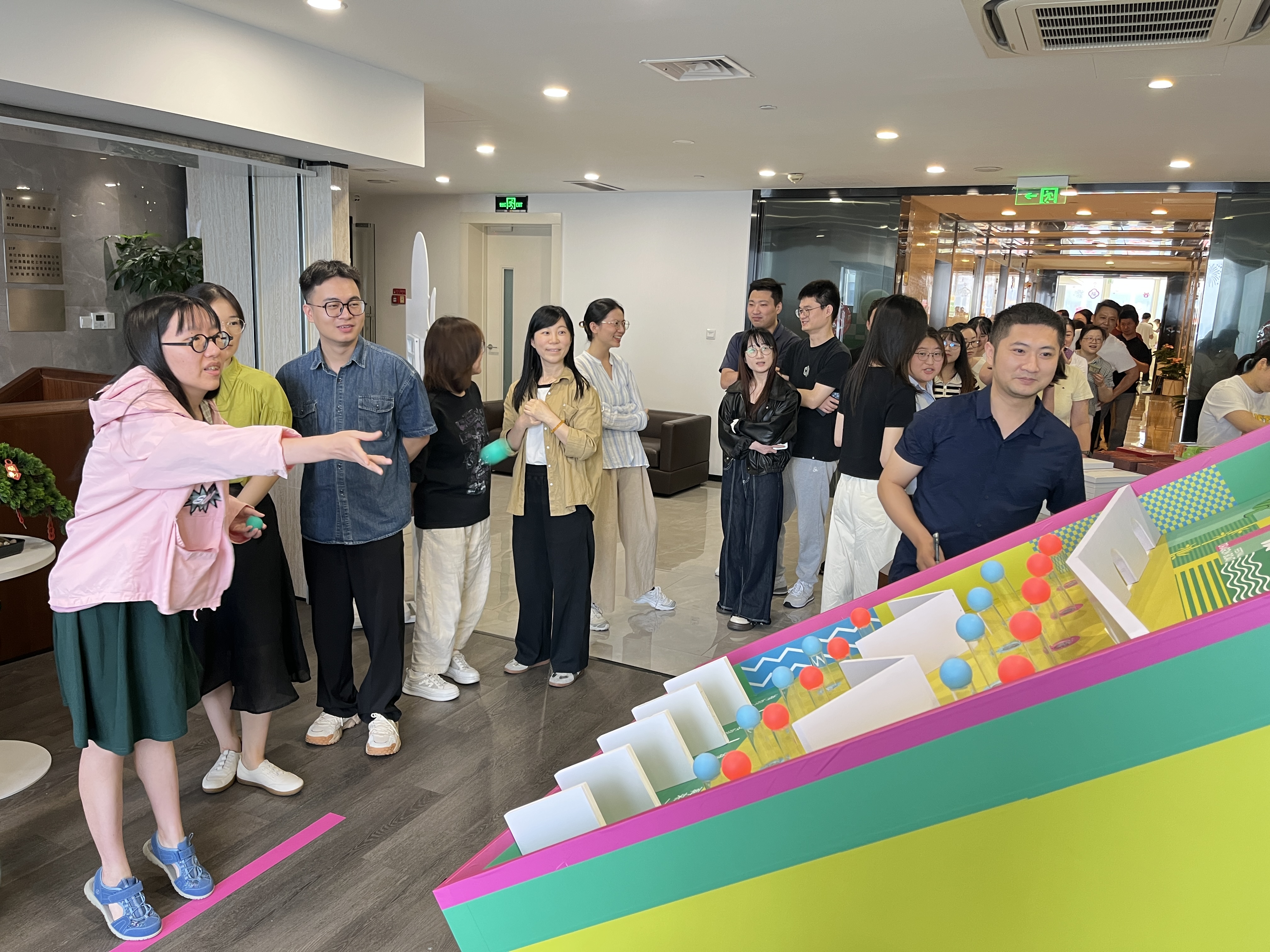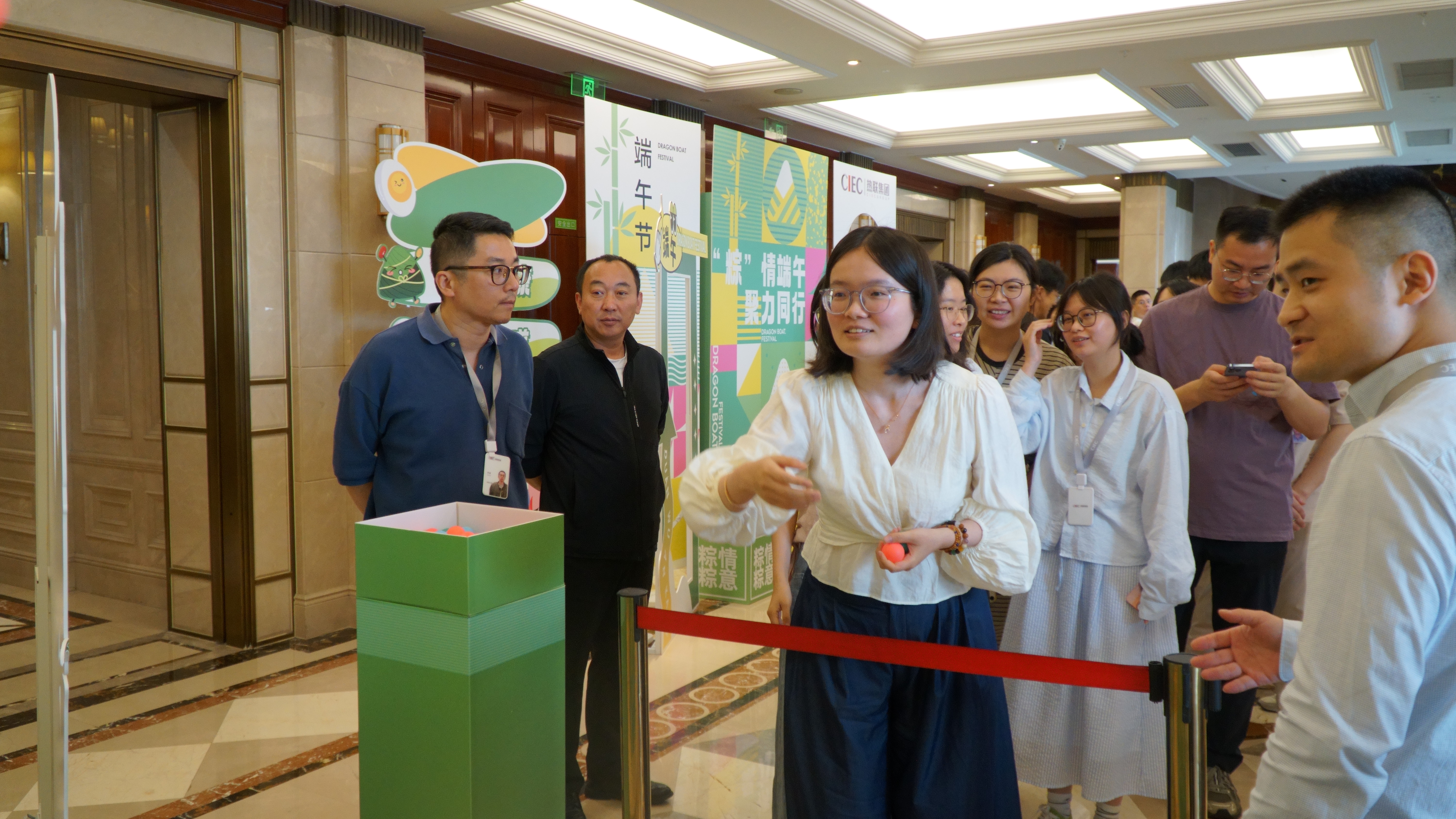 活動(dòng)現(xiàn)場以端午元素精心布置,處處洋溢著濃郁的節(jié)日氛圍。五彩斑斕的端午手鏈和造型精巧可愛的粽子形掛飾尤為吸睛,深受員工們喜愛。此次活動(dòng)特別設(shè)置了會(huì)玩才出“粽”投球挑戰(zhàn)游戲,參與者將小球滾落至下方獎(jiǎng)區(qū),即可贏取對(duì)應(yīng)獎(jiǎng)品。游戲規(guī)則簡潔明了,卻巧妙融合了技巧、運(yùn)氣與趣味性,吸引了眾多員工踴躍參與,現(xiàn)場迅速排起了長隊(duì),氣氛熱烈。大家圍聚在游戲區(qū)旁,為參與的同事加油喝彩,不時(shí)交流著自己總結(jié)的投擲秘籍。當(dāng)小球精準(zhǔn)落入獎(jiǎng)區(qū)時(shí),現(xiàn)場響起陣陣歡呼聲;即便未能獲獎(jiǎng),參與者也在一次次嘗試中盡情享受游戲帶來的樂趣,端午節(jié)的溫馨與快樂在此刻交融升溫。